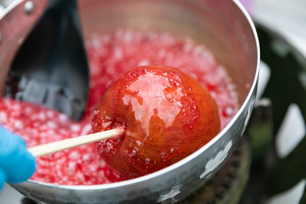 季節に合わせた新鮮なりんごで作る「りんごあめ」